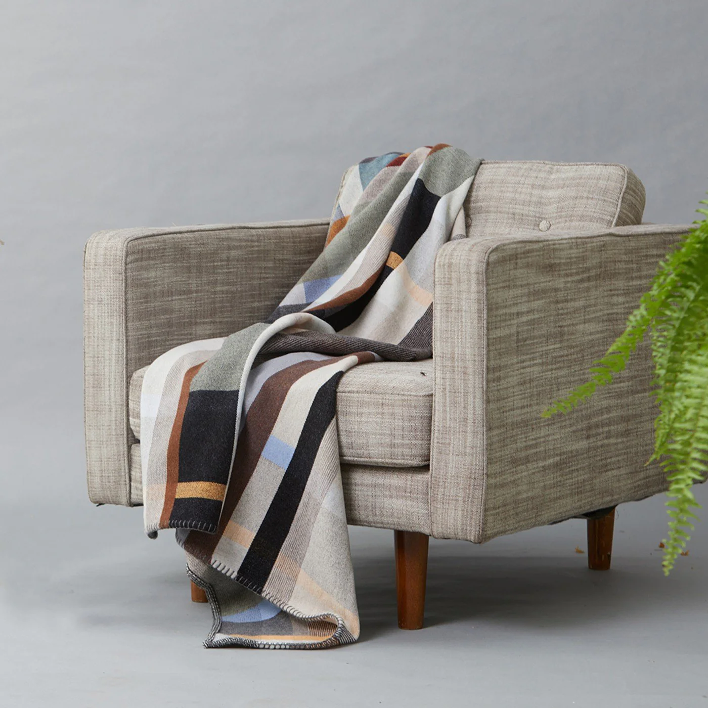 The Chipperfield design is a warm, neutral, mono, palette, and as the names for our block throws are loosely named after 20th century architects, we chose David Chipperfield, for his Japanese influences, for this new design.