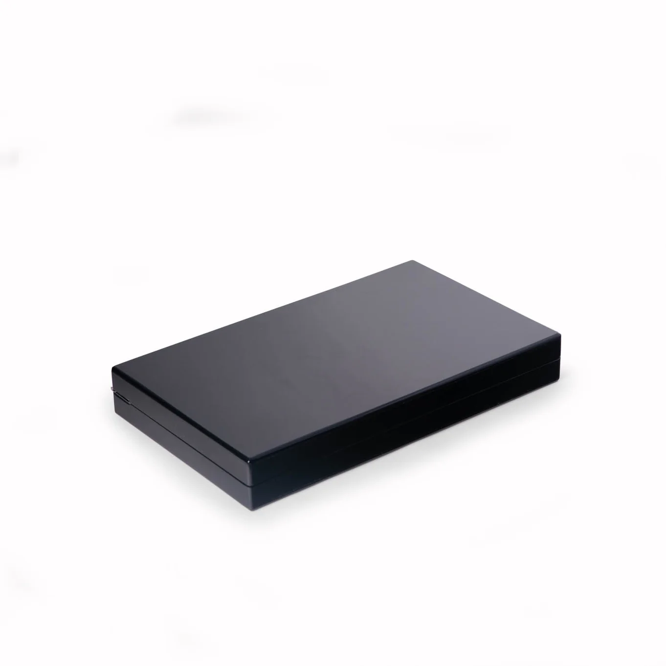 This lucite backgammon set brings a modern twist to a classic game of backgammon. It's magnetic closure and discreet hinges provide for a sleek and minimal design, perfect for any living room, game room, office or man cave - a sure conversation starter! Set includes black and white playing pieces, two sets of dice, two dice cups and a doubling dice.