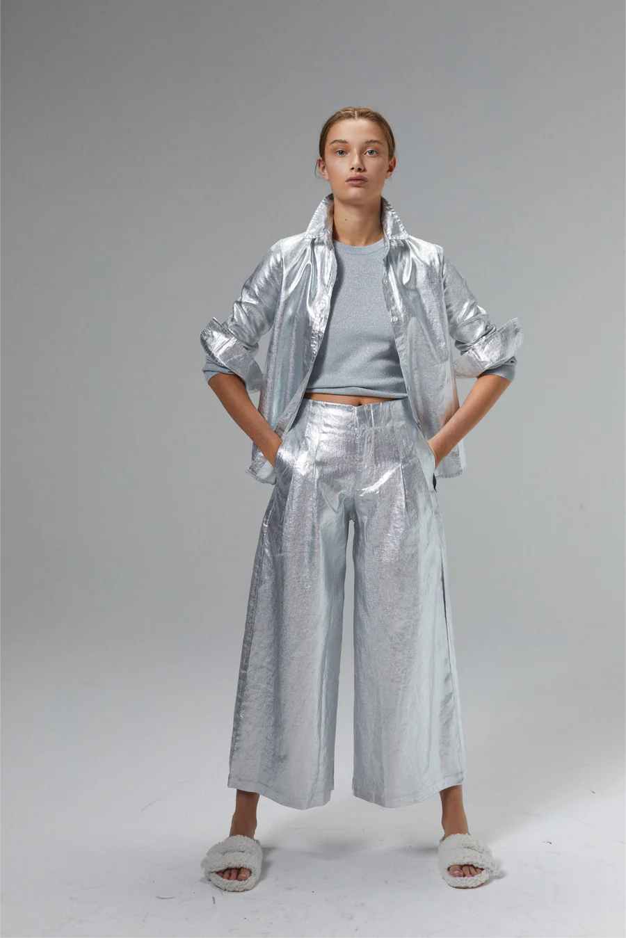 Metallic Silver Culotte Pant, from Lanhtropy